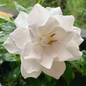 この梔子をpostする日は 毎年 雨の日 薄暗さの中 純白の花から 甘い芳香が漂っています♡