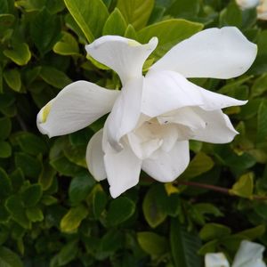 実は なりませんが 素敵な花姿に キュン💓 真っ白な 八重咲き まるで 白薔薇の様に 豪華 上品な 香りにも 癒されます💕 クチナシ 八重咲き