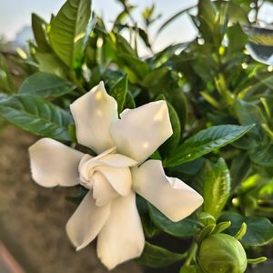 おはようございます🤗✨ 良い香りがしてます🤍💖 真っ白いクチナシの花が 咲きかけました☺️💞 🏷白輝美人 参加しま〜す🐰💗