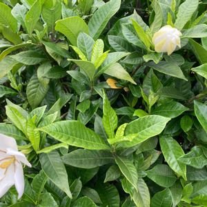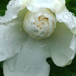 雨上がりの 八重のクチナシの花🤍🌱 大雨で〜少し傷付いてるけど やっと咲いて〜 とっても良い匂いなのよ 💚嬉しい🤍
