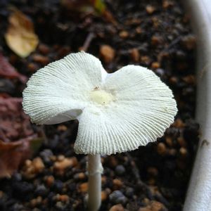 「コガネキヌカラカサタケ」 9月8日am5:52頃 ✧p📷qω•,,´)パシャ✧ マーガレットのストロベリーホイップの鉢にキノコ🍄が出現‼️ 根元の方には、小さなキノコも出来ているみたいです。 このキノコ、直ぐに消えてなくなるらしいです。 大きいのは、4日目にして消えました。 また名前が色々あって、 お釈迦様のキノコ」や「幸運のキノコ」とも呼ばれることがあるそうです。