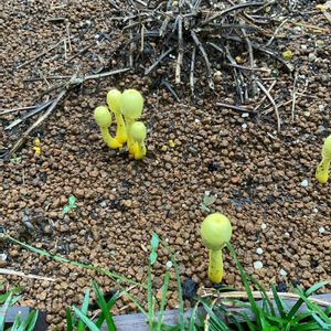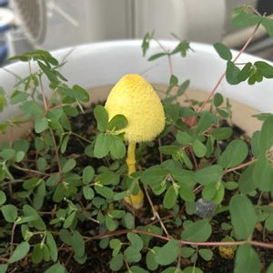 大雨で受け皿に溜まった水を捨てていたら発見。 なんですか?この鮮やかな黄色い物体。 きのこ🍄?? 検索したらおそらく 『 コガネキヌカラカサタケ』らしいです。 気持ち悪いと思っていたが じつは✨幸運✨のキノコらしい! 知らなかった! 何かの縁で生えてきたのだろうから とりあえず枯れるまでは見届けていよう😊