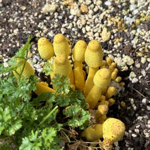 今週も暑かった💦太陽が一日中あたる地植えのアジュガがチリチリに😓 鉢植えは日陰に避難中でした☺ 昨日、日が落ちる頃に庭パトロール をしていると黄色いキノコを発見✨ 調べてみるとコガネキヌカラカサタケ(黄金絹唐傘茸)というキノコで 「幸運のキノコ🍄」と呼ばれているらしい✨初めて見ました😄