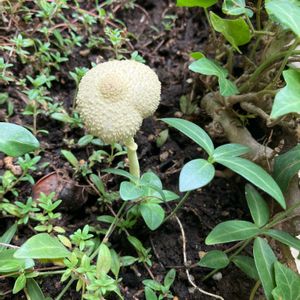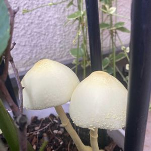 台風ノロノロですね🌀 わが家は大きな被害無く過ぎました 台風の風が強く 停電20時間ほど 通信🛜も悪く 携帯 電話しか使えなくて 大変でした😅 避難させていた多肉や花鉢 戻してたら アラ〜 キノコ🍄🍄🟫 コガネカラカサタケ らしい 幸運のキノコ いい事あるかしら❤️