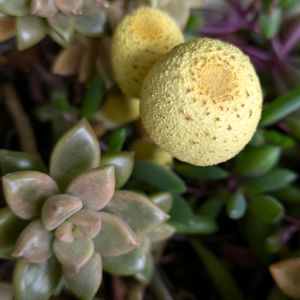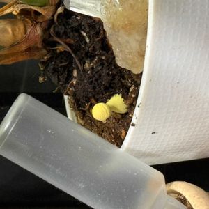 この黄色いものはキノコ? テーブルヤシの目元に突然現れました。