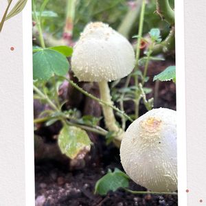 キノコ✨バラの根元に今年も🍄生えました