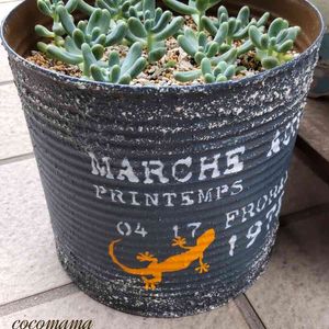 みんとぐりーんさんのお洒落なリメ缶に寄植え✨😊