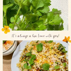 ベランダで育てたパクチーとスペアミントを収穫してチキンビリヤニに✨ スパイスとヨーグルトでマリネした鶏肉に刻んだミントとパクチーを合わせてバスマティライスを乗せて炊き上げて完成❗️ ミント、前に使ったときよりも舌触り良くなってた!