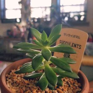 多肉さん植え替え全6鉢(第2弾w) 名前覚えるまで札付きw 化粧で1センチ位、 プロトリーフの多肉用ソイル使用。 おはようございます(^^) 今日はまた真夏日、既に暑いです^^; サンライズマムさん。 光沢のある葉も綺麗で 上に伸びてくれるのかな?w 成長が愉しみです(´∀`)ワクワク