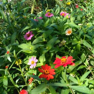 手入れが出来ていない花壇で、ジニアが暴れています🌼