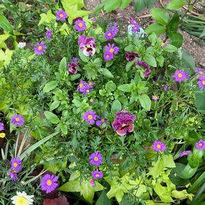 ちょっと遅かったんですが、4月中旬に切り戻しをしたミニフリルパンジー😃 一回り小さくなったけど、次々に咲き出しました🙌 ブラキカムと相性良き❣️