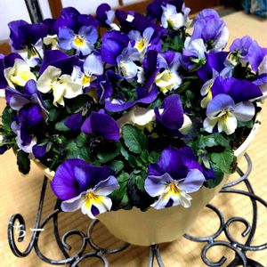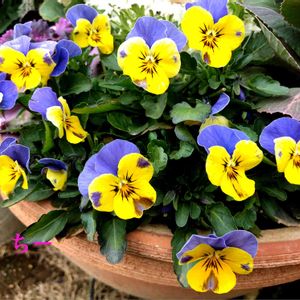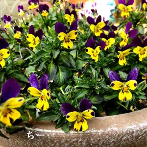 おはようございます 寄せ植えの中のビオラさん よく咲いていたのでupしました😊