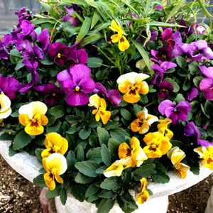 おはようございます😊 雪☃️が降る前に撮ってあったビオラさん 2色植えのポットを2つ植えてあります