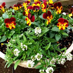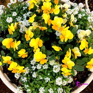 ビオラとアリッサム 寄せ植え作りました😊🎶