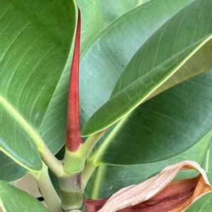 ゴムの木さん 赤いキャップがチャームポイント🎶 職場の木ですが、私がお世話してます