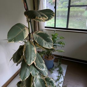 ✤フィカス ルビー ダイソー でいい斑入りの子を見付けました🤩✨ 観葉植物🪴は🔰で水やり加減がまだ分からないです💦 とりあえず新しい葉っぱか展開してきて元気そう! ε-(´∀`;)ホッ 春から外に出したのですが、もうそろそろ室内の方がいいですかね🤔💦 実は最近 VTuberにハマってしまいまして…久しぶりの投稿 |ω・)デスw 本日2投目の投稿なのですが… 1投目の頑張って切り抜いた『エレクタ』の可愛い葉っぱも見てやって下さ〜い✨