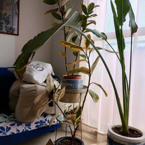 定期パトロール中に、某ホームセンターにて見切り品の山が!😱 救出の為という名目で、3株お迎えしちゃいました🪴🪴🪴🥳 なんとグラキリス実生苗¥2000が¥600に‼︎ シェフレラとゴムの木はそれぞれ底面給水鉢のまま、¥1000が¥300と¥200に!! 3株あわせて¥1100!🤩 あとは置き場所問題ですね(笑)😂 まーなんとかなるか(笑)
