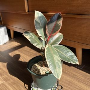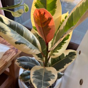 ダイソーで300円か500円で買ったゴムの木、模様が芸術的レア!大事に育ててます😉