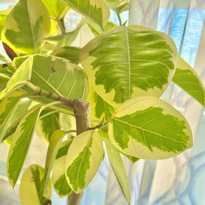 【インドゴムの木】《クワ科》 今日のお花 フィカス🟰ゴムの木 ベンガレンシスは 丸くてかわいい葉っぱと 白くて綺麗な幹が特徴