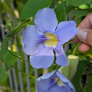 ベンガルヤハズカズラが、咲いてきました。水やりの時に、フェンスの外に向かって2輪見つけたから、外に出て撮りに行きました。2つとも同じ色ですが、陰になって1輪は色が薄く写りました。 レンママさんのおっしゃる通り、涼しくなったら咲きました。有り難うございます。