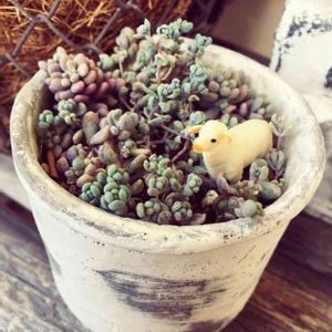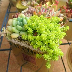 余った子たちでミニミニ寄せ植え💓 いつものごとく入れ過ぎな気もするけど… どうしても手前の丸葉万年草を入れたくて💛 たらり〜んになるの楽しみだナ(*´˘`*)♡