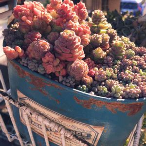 ◆春のもりもり祭り 以前投稿したフォション缶が春のもりもり祭り! セダムが良い感じにもりもりっとしてきました!🎶 クラバツムと金のフォション缶で明るく✨ 差し色に後方の花うららさんなど☺ セダムにうもれてるのはちびの火祭りです(笑)