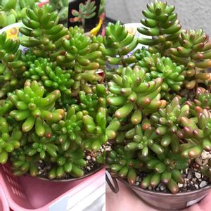 おはようございます💕 今日の多肉ちゃんは 虹の玉🍀 モコモコで可愛い〜 すこーしですが、紅葉してます🍂 最近、挿し木をしたのでもっと増えてくれるかな…楽しみにしてます。
