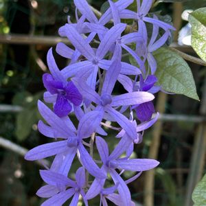 ペトレア 今朝の実家にて咲くペトレアです。 ペトレアは熱帯アメリカ原産でクマ ズラ科ヤモメカズラ属のつる性常緑 低木です。つるが絡みつきながら春 から秋にかけて美しい花を長く楽し む事が出来ます。(*´∀`)♪❣️