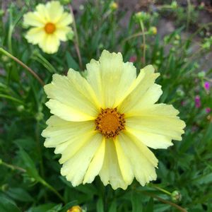 コレオプシス フルムーン🌕 レモンイエローの可愛いお花です🍋去年、ネットで寄せ植えセットを購入し植えたので初めて咲きました💠 でも調べてみたらスゴく大きくなるみたいで、狭い花壇に植えてしまったので、場所間違えたかもしれません😓💦