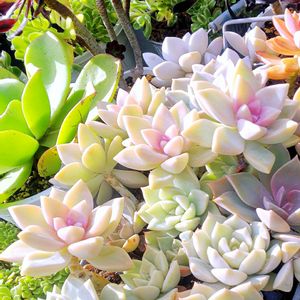 グラプト寄せ♥️ 昨年は夏にボロボロになってたけど、今年はとりあえずいい感じで夏越せたかなぁ?(*ˊᵕˋ*) グラプトベリア グラプトペタルム 白牡丹 桜牡丹 蒼星