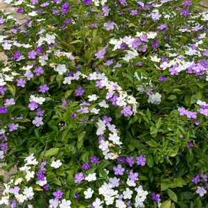 ニオイバンマツリ(匂蕃茉莉) 咲き始めは濃い紫、次に薄紫となり最後は白い花へと変化します。一本の木で3種類を味わえる木です。名前のとおりかなりの芳香があります。