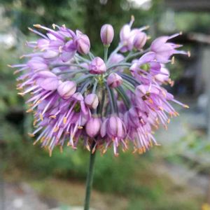 らっきょの花です 生まれて始めてみました🍀 大きくするには咲かせない方が良いみたいですが⭐ お花好きの母にとっては 実よりお花みたいでした🌸😊🎵