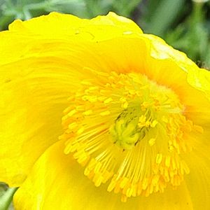 ポピーのお花が、風に揺れます。 雨の止み間のひと時、黄色が輝きます。