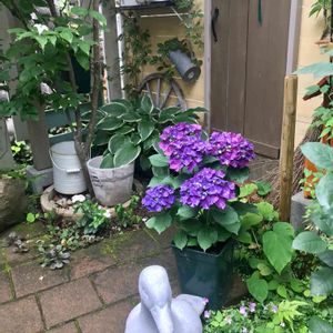 ハイドランジア・ディープパープル 明後日の母の日に 義母へ贈るために買いました。 2日間だけ我が家に飾れる〜💙 ラッピングを外して 水やりしてます💙💙 少し大きくなったら… 小枝をもらって 挿し木しようっと💙 それにしても… いい色〜〜
