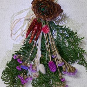 おはようございます😃 昨日園芸療法でスワッグと言う吊るし飾りを作りました。🤭上のバラの様な実はシダーローズと呼ばれるヒマラヤスギの実にペイントした物です。他にもドライのスターチスやラグラス、千日紅ラムズイヤー、唐辛子を使いました。 土台のヒバは生です。 前回の活動で今年のカレンダーを作ったので、どうぞ2月10日の投稿もご覧ください😊よろしくお願いします🙇♀️