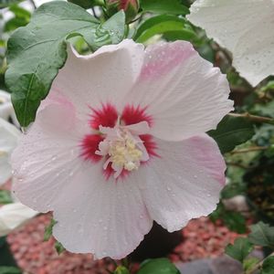 ムクゲ日の丸💠 雨にも負けず開花🎶