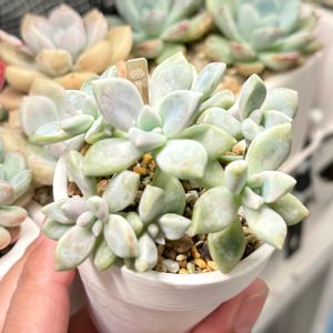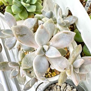 グラプト系も好きです♪ 安いのを見付けて『蒼星』をお迎えしました。 写真では分かりませんが(^^ゞ実際はもっとパープルです。 薄く粉を纏った青白い『ピンクプリティ』みたいな肉厚の葉(*´︶`*)❤︎
