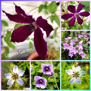 ちゃお〜💕 🏷水曜日は水色🩵 青いニゲラちゃんが可愛く咲いてきました。近くには🩷と♡も 土のせいではなさそうね∗´ㅅ`)"フムフム ↖こぺんちゃんのクレマチス 空中に浮かんでるみたいで好きなの💜 ビクターヒューゴー →ちょっとしか毎年咲かないベルフラワー🔔モリモリにしたいんだけどなʕ→ᴥ←ʔ ↓コペンちゃんセレクトのパンジー💜 今日は秘密の花園造園計画 ガテン仕事頑張るねฅʕ•ᴥ•ʔฅ