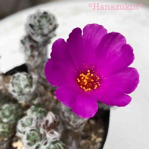 お花記録… 「ヴェルデルマニー」です。 ポーチュラカリア属のモケモケ多肉です。 ポーチュラカリア属の多肉は、他に「雅楽の舞」「ピンキー」などがあります。 「ポーチュラカ属」とは同じ「スベリヒユ科」で近いのですが、違う属です。 昨年もお花をアップしていますが、いまいちショボかったので再アップします。 花の形そのものは、バンバンお花が咲くポーチュラカとけっこう似ているのですが、ヴェルデルマニーはたまにしか咲いてくれないもので… 花は濃いピンク色で大きさもそれなりにあり、けっこう目立ちます。 しかし花弁はけっこう薄く、ぴらぴらしています。 一回開いたお花は、一日しか咲いていないのですよね。 ちなみに「ピンキー」もヴェルデルマニーとお花はそっくりで、こちらは真夏にバンバンお花が咲きます。 ピンキーは暑くならないと成長しないので、まだ動き始めたばかりですが…。