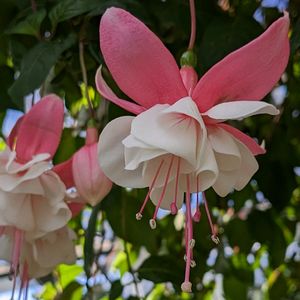 温室の中のフクシアは、いつ行っても、華やかで可愛い色合いで咲いています💖