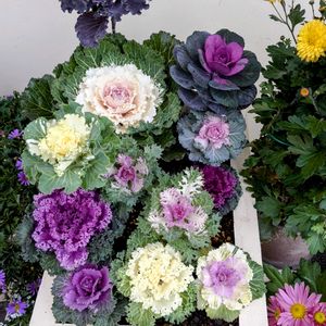 葉牡丹の寄植えしてました😄 実家に行った帰りに産直市により 地元の人が出されていた葉牡丹12本買いました。 これだけで1000円少しでした👍 玄関前が華やかです💖✨✨ ウレシイ~😃