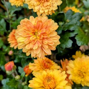 庭の菊です。 1️⃣2️⃣ 見切り品の花なし苗を買ってきて剪定しながら 何色が咲くのか待ってました。黄色からオレンジが入ってきて とても気に入ってます💛🧡 3️⃣ 亡き義父母さんが植えられた白菊 もうかなり昔からです。 今年も綺麗、清楚に咲いております🤍 今先 コロナとインフルの注射打ってきました。 痛かった〜😅