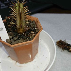 2つ有る内の1つの黄彩閣が、根腐れを起こしていたので、外科手術を断行しました。このままの状態で、初根を待ちます。