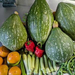 かぼちゃ(ロロン)収穫して撤収しました。 二株で15個になりました、 義姉妹にも美味しいと評判です、 すでに種も採ってあると報告受けました(笑)。 昨年のかぼちゃはうどんこ病に強いと(確かに) しかし水っぽい? 我が家に合いませんでした、でも20個収穫。 今年の甘柿は鈴なりですが小さいです、 お試し収穫でゴマも入りそこそこ甘いです。