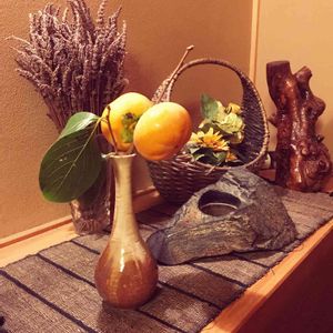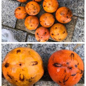古民家の植物 可愛い柿発見💕 模様がとっても可愛いこの柿は甘柿でした😺