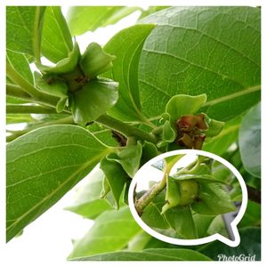 食いしん坊の私は─ 早速、チェックして来ましたよ。。。((( ・Θ・) ♪ どれどれ(..) もう、こんなに大きくなりました! キウイは、2㎝程ありました(๑'ᴗ'๑) ※キウイの花、カキの花のタグをそれぞれ見ると 成長の様子がわかりますよ🤗