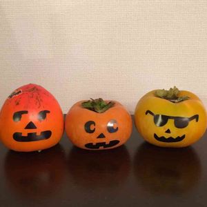 三種の柿で遊びました、😜 ハロウィン🎃 🎃🎃