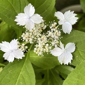 吉岡麗子さんの山紫陽花 白扇 山紫陽花は小さいし目立たないうえに これは色も白いので地味やけど、とっても好きな山紫陽花のうちの一つ
