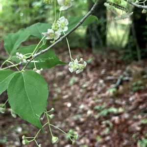 「ツリバナ」です。 ブラブラぶら下がった地味な色のお花が可愛いです🎵 秋には赤い実が見られるかな?