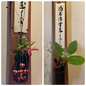 お出かけ先のお店の壁に飾ってあったお花です☺️ 昨年、初めて山シャクヤクの種を知り、ツリバナの実と共にとても素敵でした。 今年も山シャクヤクの種を見る事ができました。 同じお店の同じ場所での撮影です。 左 2022年9月17日 右 2023年9月29日